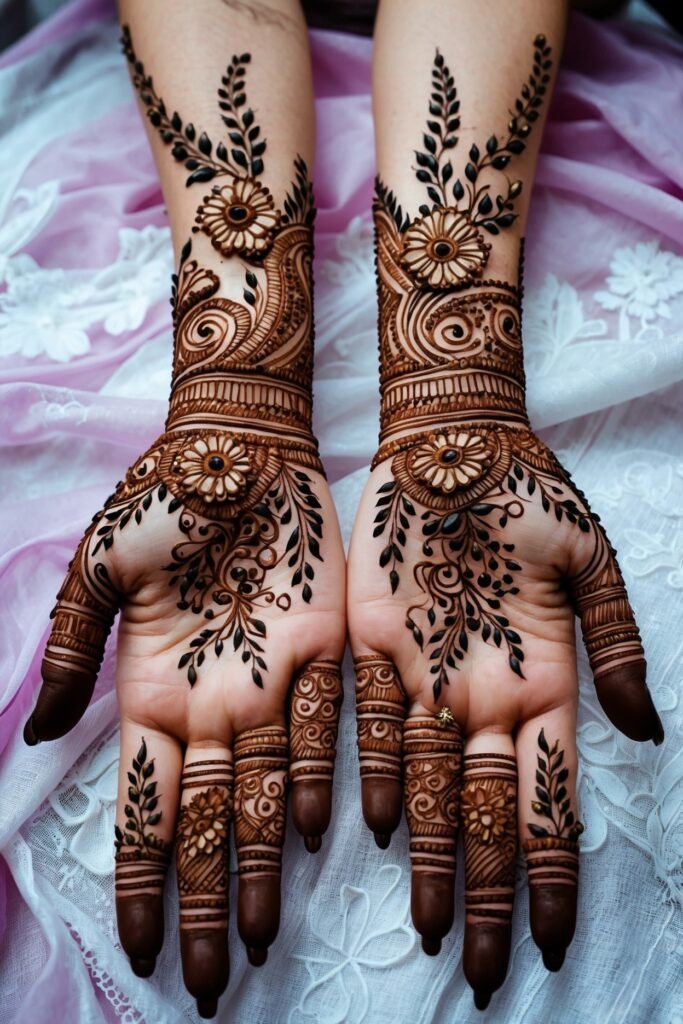 Fusion henna blending tradition and modern art is trending more. Many prefer mix rather than full heavy mehndi