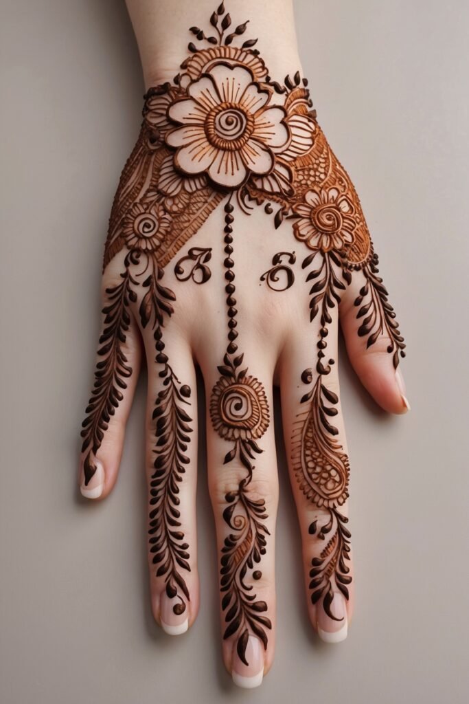 Add initials wedding date or small motifs that mean something to you or loved ones. This makes mehndi personal and meaningful.