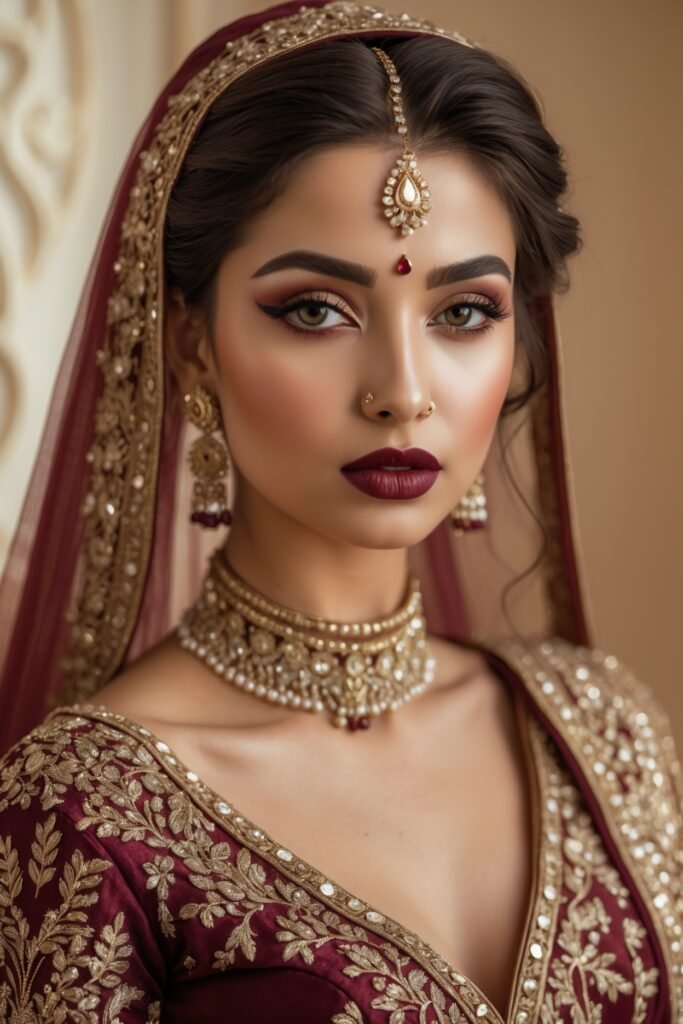 Burgundy tones scream luxury. A deep wine lip paired with subtly smoked-out eyes adds a touch of drama without going overboard.