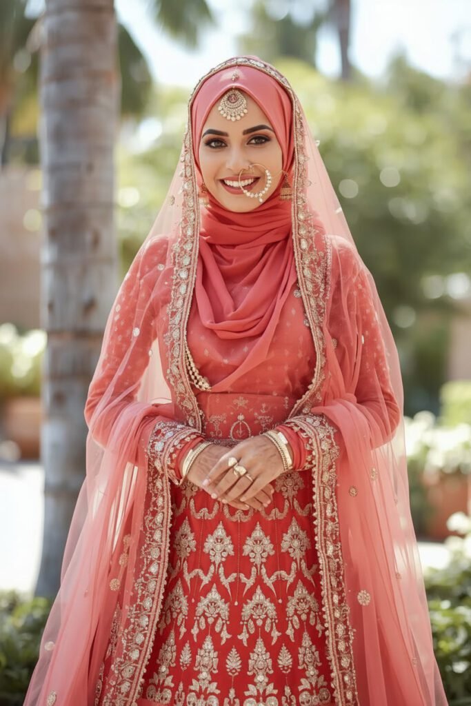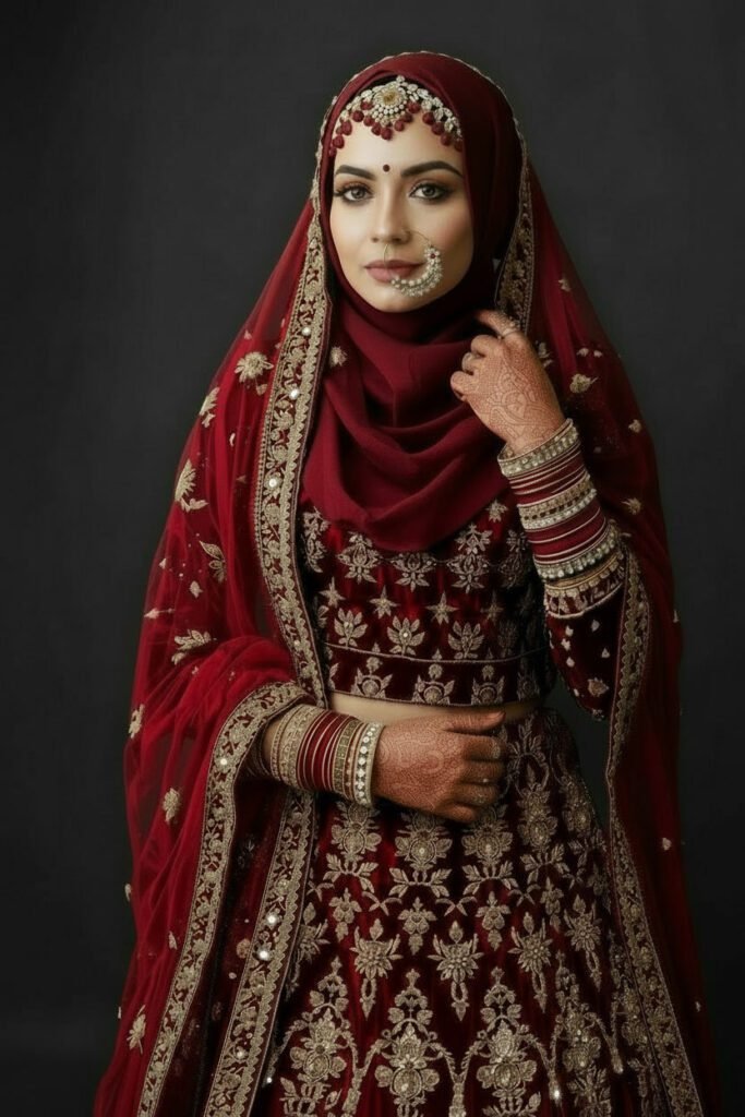 I ended up choosing a burgundy and gold lengha with a beautifully embroidered dupatta that I styled as my hijab. It wasn’t the most expensive outfit, and it wasn’t what anyone else expected, but it was perfect for ME.