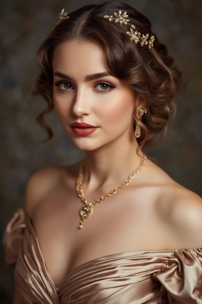 Bridgerton hair and makeup | Regency era hairstyles | Period drama beauty | Bridgerton inspired wedding looks | Regency makeup tutorial | Bridgerton bridesmaid hair | Historical hairstyles | Empire waist dress styling | Regency era fashion | Bridgerton ball hair | Period drama hairstyles | Wedding hair Bridgerton style | Soft romantic makeup | Updo hairstyles regency | Bridgerton beauty looks