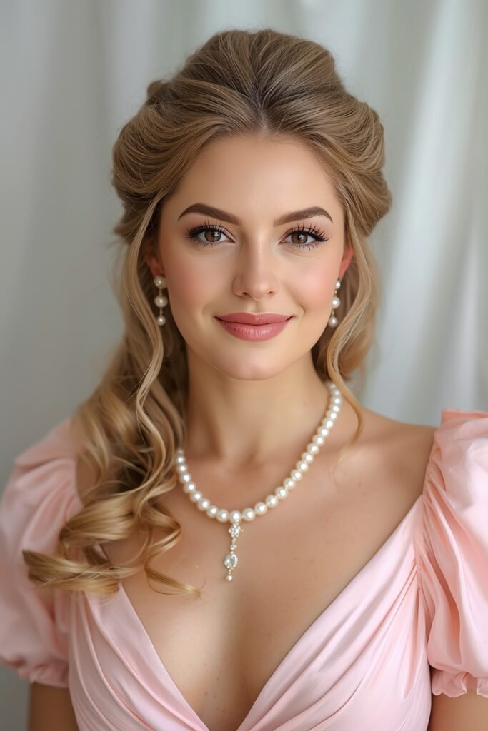 You do not need a full regency wardrobe or a team of stylists to recreate these looks. Even just soft curls with a pastel dress and some pearls will give you that lovely romantic Bridgerton vibe. Start simple and build up if you want more drama.