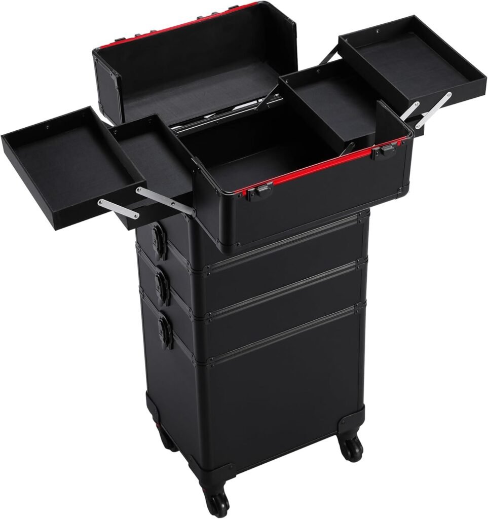 • Great for large events: If you’re doing makeup for a full bridal party, a rolling trolley ensures you have everything you need.