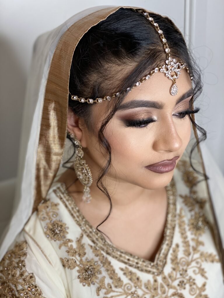A soft smokey eye is the way to go if you’re looking to add a touch of drama without going full diva. Skip the heavy blacks and opt for muted neutrals like taupe and beige. These shades blend seamlessly and create a soft gradient that makes your eyes pop without overpowering your look. Pair it with a fresh, glowing complexion and understated lips for a refined elegance that’s perfect for your big day.